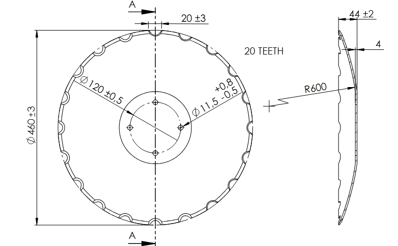 Disk ozubený vydutý Ø 460mm - 4mm tloušťka.