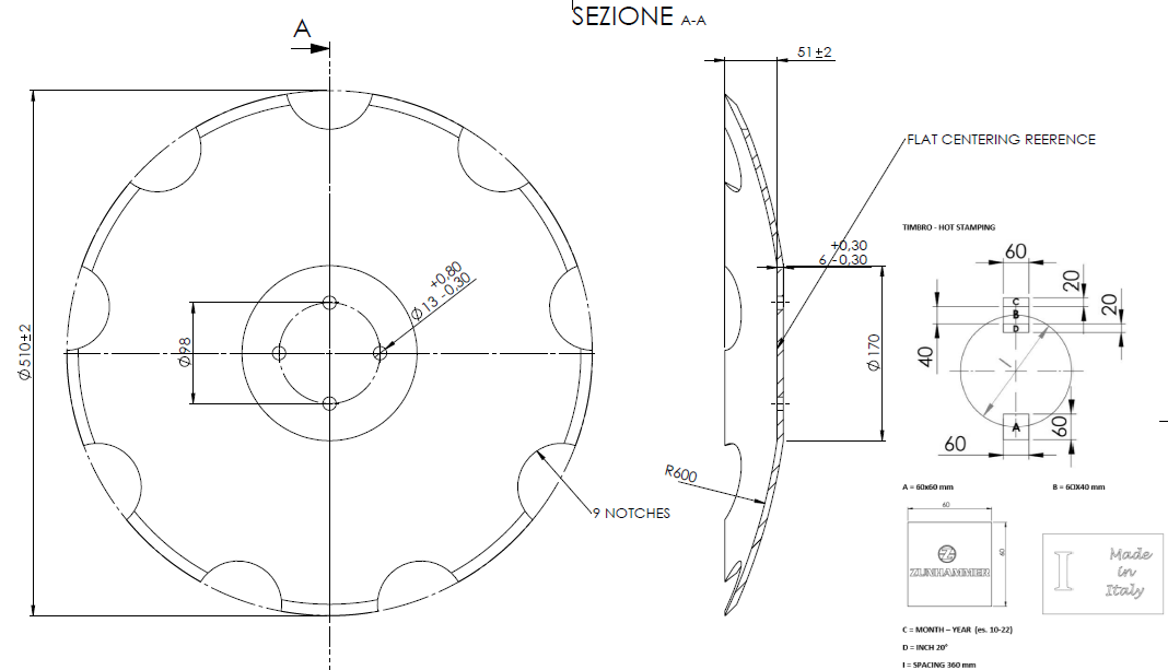 Disky jsou vyráběny v Itálii ve výrobě AMA NAF, která se specializuje na výrobu disků, nožů pro sekačky, hřebů pro rotační brány a dalších zemědělských komponent. K výrobě disků se používá výhradně borová ocel, která je svými vlastnostmi nejvhodnější k tomuto typu výrobků, dává jim potřebnou pružnost a zároveň dlouhou životnost. Ostří disků je pak vytvořeno jedinečnou metodou válcování za tepla. Takto vytvořené ostří má velmi dlouhou životnost.