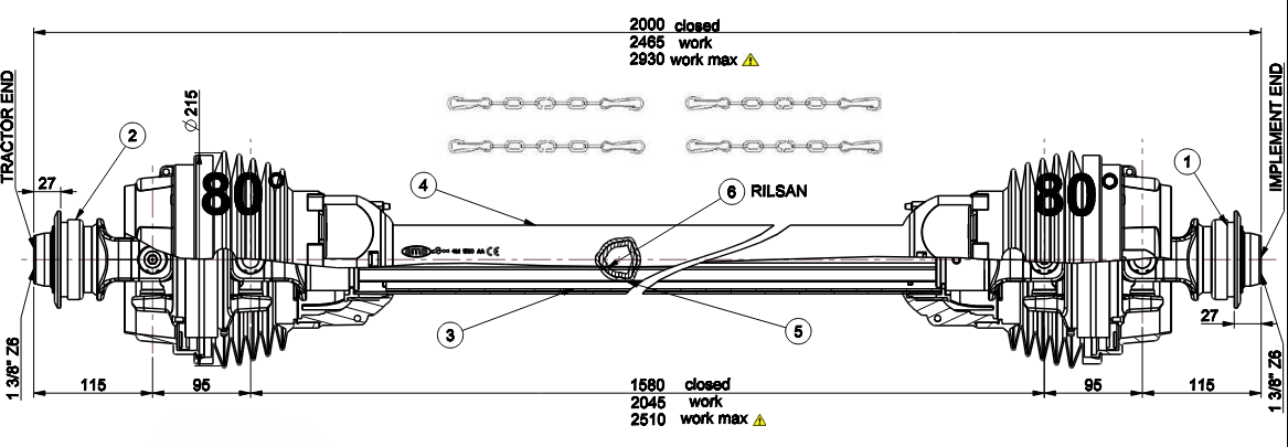 Délku kardanových hřídelí od tohoto výrobce měříme celkovou od konce ke konci ve staženém stavu. Správnou délku zjistíme tak, že si nasadíme požadované příslušenství na stroj, dáme jej do polohy kdy je nejmenší vzdálenost mezi vývodovou hřídelí na traktoru a hřídelí na příslušenství, změříme si vzdálenost konců hřídelí. K této vzdálenosti přidáme cca 5 cm a máme požadovanou délku.